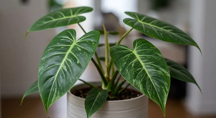 フィロデンドロン・バーキンは、美しい斑模様と個性的な葉の形が魅力の観葉植物です。